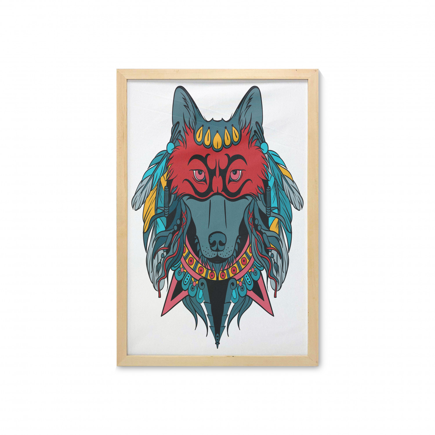 Tribal Wall Art With Frame Warrior Wolf Portrait With Feathers Animal Art Printed Fabric Poster For Bathroom Living Room 23 X 35 Teal White And Red By Ambesonne Walmart Com